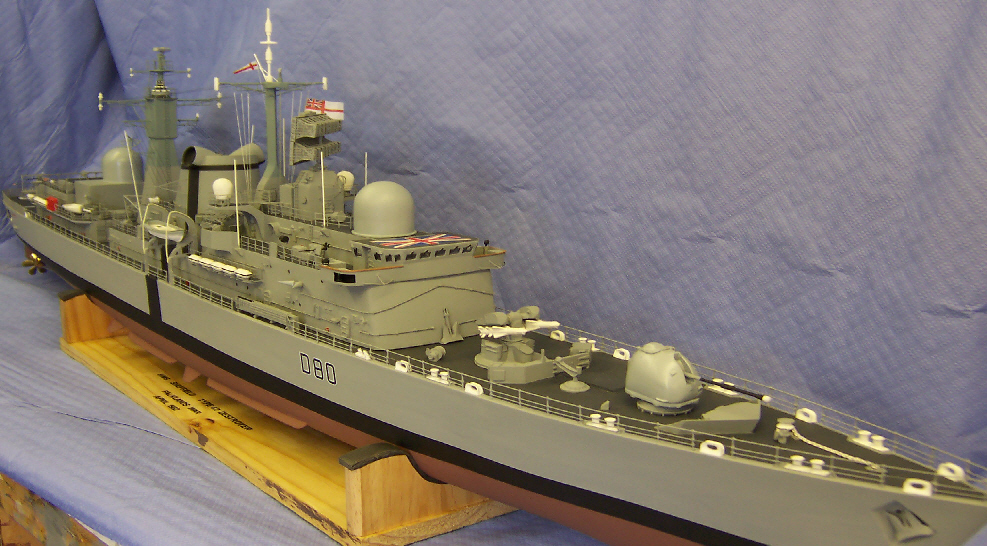 This is the second Sheffield built to order. For a client who wanted the Falklands War paint scheme and also pennant number and name plates, which where removed during the actual Falklands conflict on the real ship.