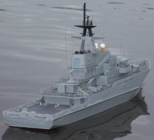 H.M.S. Tyne. Shown here 90% completed. This model was constructed using a Fleetscale hull, Jecobin Plans and Sirmar fittings.